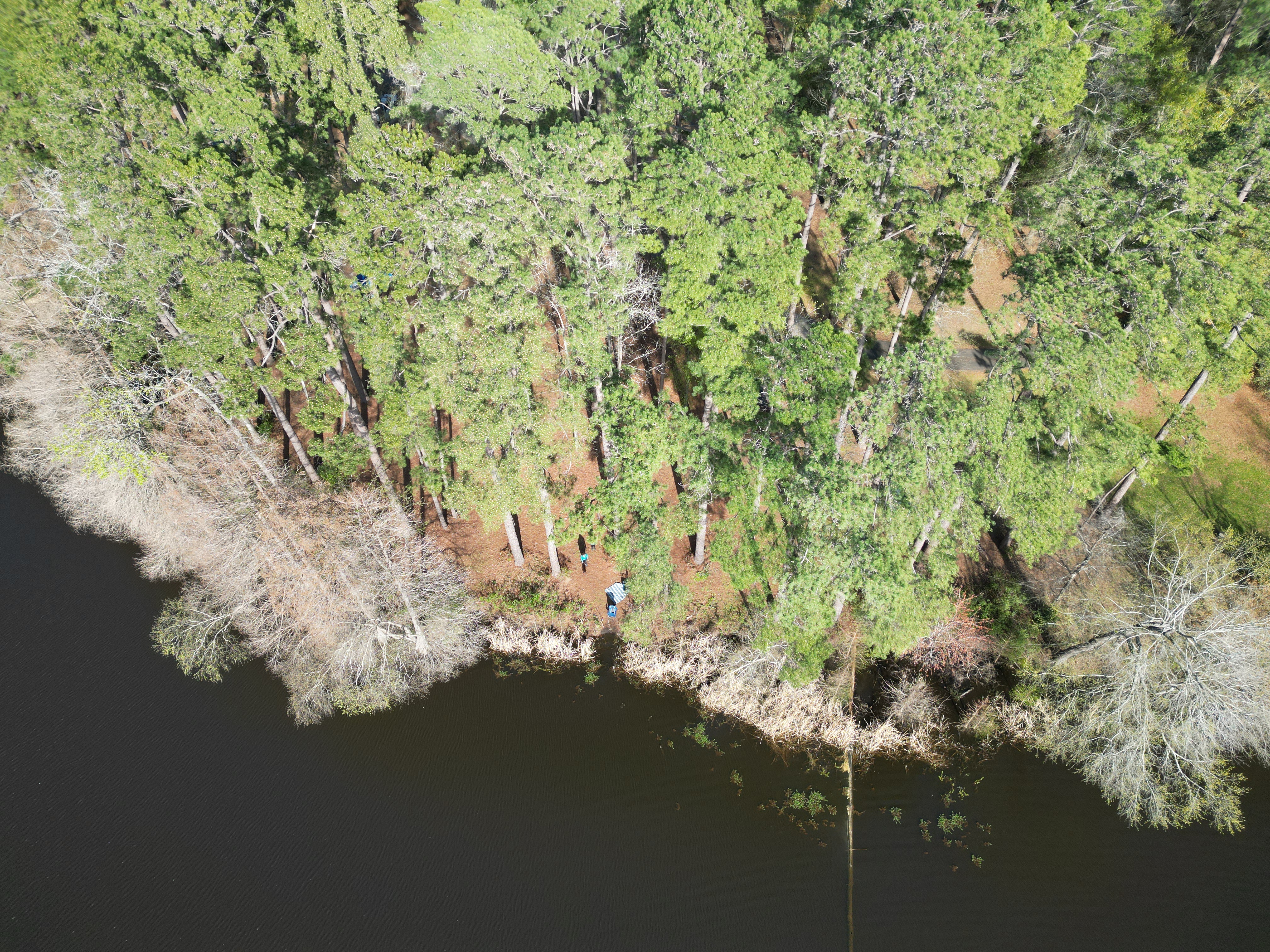 Taking to the skies with our drone, we gain a higher perspective of the forest below, capturing the sprawling beauty of Davy Crockett National Forest. As the sun sets across the lake, painting the sky with hues of pink and orange, we gather around the campfire to share stories. The warmth of the fire and the glow of string lights inside our tent create a cozy ambiance that harkens back to childhood camping adventures.